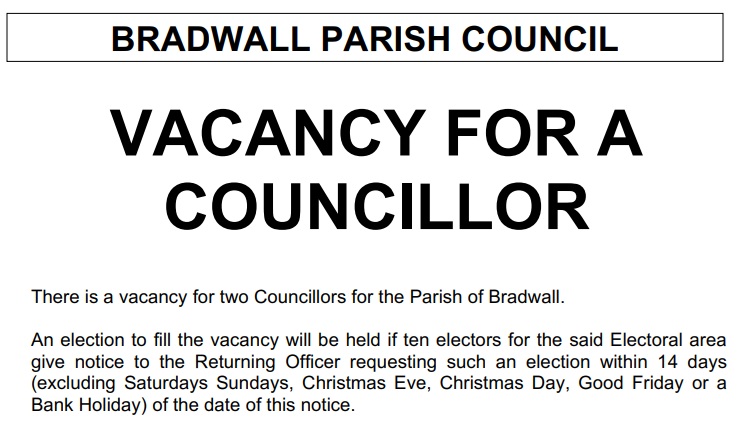 Bradwall Parish Council and Bradwall Village Hall, Bradwall, in the beautiful South Cheshire countryside are located within the unitary authority area of Cheshire East Borough Council and UK parliamentary constituency of Congleton (the Bear Town). The village is near to the historic market town of Sandbach, with its Saxon Crosses and cobbled market square, Holmes Chapel and the roman town of Middlewich, and where the Middlewich branch of the Shropshire Union canal joins the Trent and Mersey canal. Junction 17 of the M6 is about 2 miles away and Sandbach Rugby Union Football Club (RUFC) is literally just up the road. Bradwall is host an Annual Horse Trials Event and is the base of Willis’s Drainage Company, Carbutts Turf at Pewitt Hall Farm and Fields Farm Fisheries and Turkey Farm.